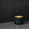 澄んだ海の青ではなく、どこかアンニュイで愁いを含んだ表情をしています。まるで海の一部を切り抜いたかのように、カップの底に近づくにつれて色が濃く深くなっていきます。