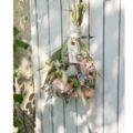 ふんわり淡いピンクの芍薬とラムズイヤー、小花などを重ねた夏のナチュラルスワッグ