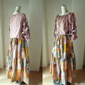 ノスタルジックな色合いの、絵画なパッチワークスカート。