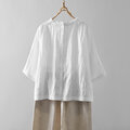 目を惹く大人可愛いリネンブラウス フリル襟 前後着用可能 2WAYブラウス ホワイト 230609-1
