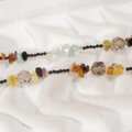 大粒で透明感とカットが美しいスモーキークォーツや、アマゾナイトやガーネットなどのカラフルな天然石のさざれ等のネックレスです。