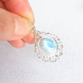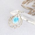 AAA-グレードのラリマーを、レースのようなデザインのオリジナルパーツで上品なペンダントに仕上げました。