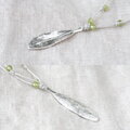 マットシルバー色のリーフチャームをトップに配し、透明感と輝きのあるペリドットを散りばめた爽やかな雰囲気のネックレスです。ライトグレー色のポリエステルコードで素材を繋ぎ、ネック部分はポリエステルコードとライトグレー色の綿の糸を編み込んでいます。