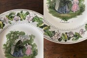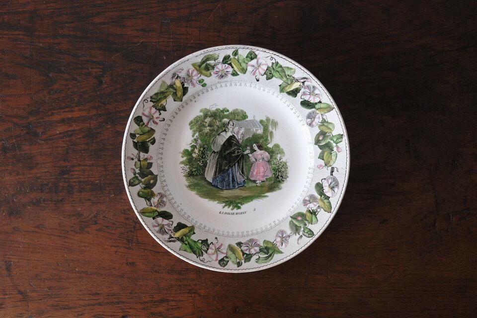 Creil&Montereau 彩色グリザイユ皿 アラボンヌママン φ21.5cmフランス アンティーク 0501217