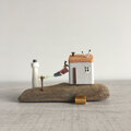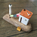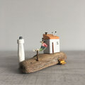 先ほど受け取りました。 流木の風合い、カモメ、岬の先にある白い壁の一軒家…ノスタルジーに誘われ.風や波音が静かに聴こえてきそうな雰囲気のある作品です。早速、リビングの棚に飾りました。 ありがとうございました!