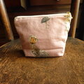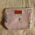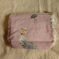 ピンクのハシビロコウ柄のオックス地で作った台形のポーチです。
