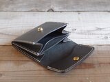 ヌメ革 手縫い コンパクトウォレット ブラック