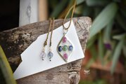 落ち着いた色ながら角度によっていろんな輝きになり、さりげない存在感。どんな服装にも合わせやすそうです。包装も素敵にまとめてくださり、ありがとうございます。また違う石たちにも挑戦してみたいです。