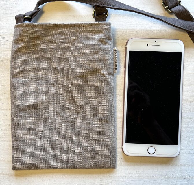 リネン・無地うす茶色でスマホショルダーを作りました。とても素敵!