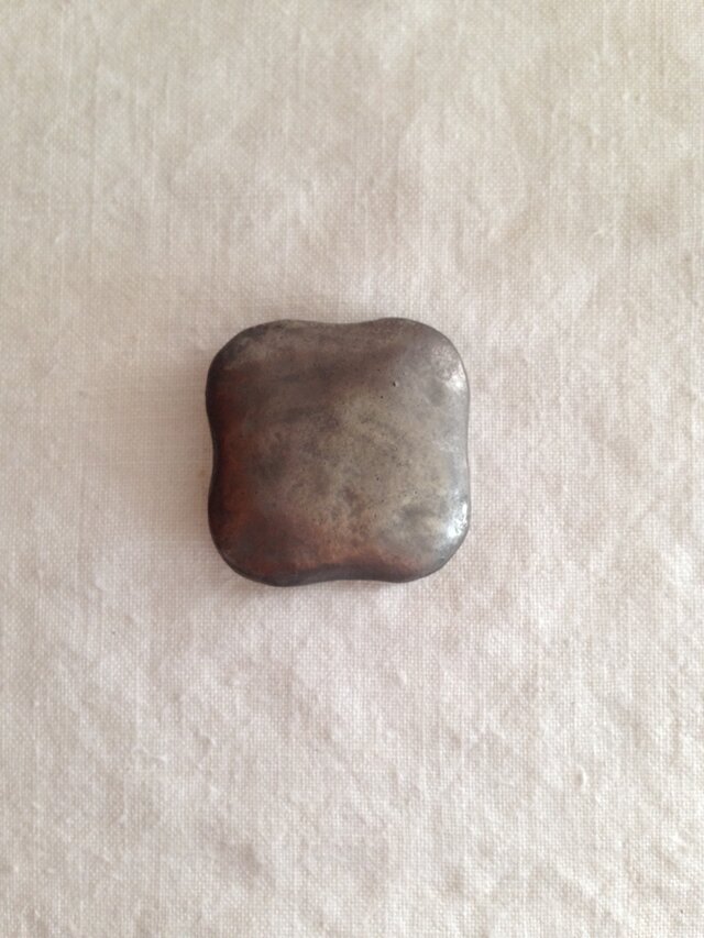 再度銀彩を施して仕上げた陶器製のブローチです。