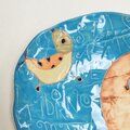 「好き嫌いがあってご飯を残す子」「成長盛りなのに体形を気にして食べない子」そういった子供達に、ご飯を食べ終わったら《なにか面白いモノがある》というご褒美になるようなうつわを作りました。