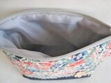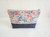 可愛い花柄の生地に紺色のコットン生地を合わせて作りました。