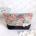 上品な花柄生地と紺色生地を組み合わせた、マチ付きポーチです。