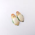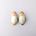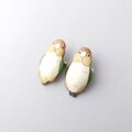 ほっぺの部分は金粉を蒔き、くちばし部分は白蝶貝もしくは青貝を貼っています。身につけて動くことで 螺鈿の部分がキラキラと光ります。