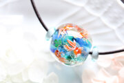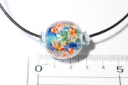 とんぼ玉のサイズは23mm×24mmです。重さは26gです。