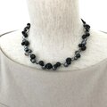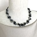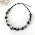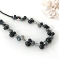 透明感のあるパーツやとんぼ玉、ヘマタイトなどを使用したモノトーンのショートネックレスです。