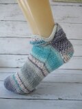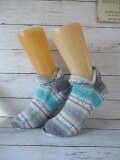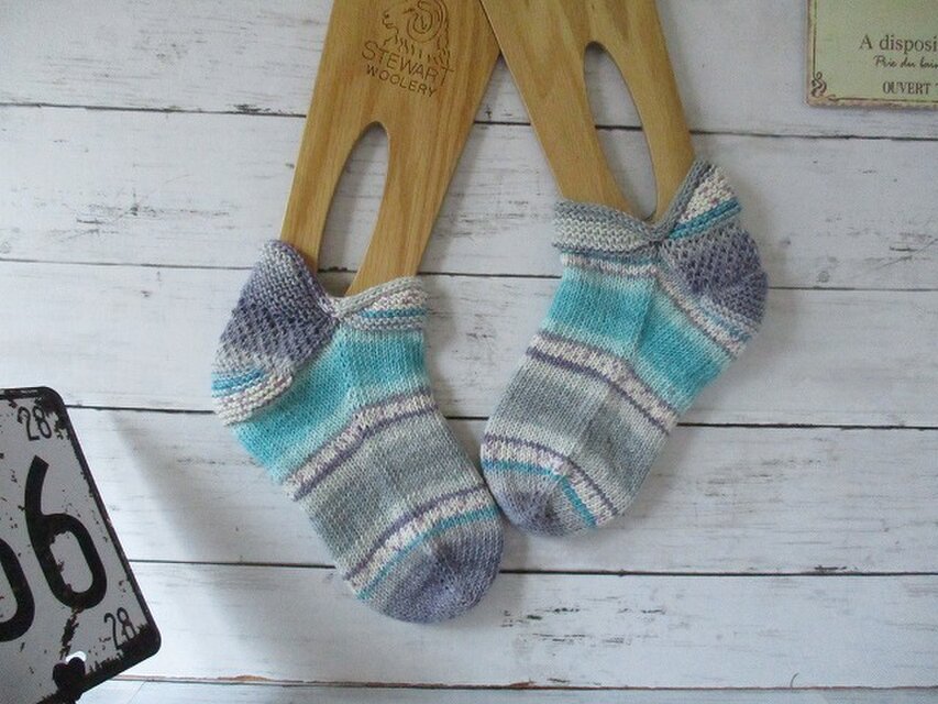 ドイツのブランド Opal Cotton Premium KFS 192 ブルートパーズと名前のついている糸で編んだ chiharu.amukoのIDでインスタグラムで活動されている方のレシピで編んだコットンソックスです。