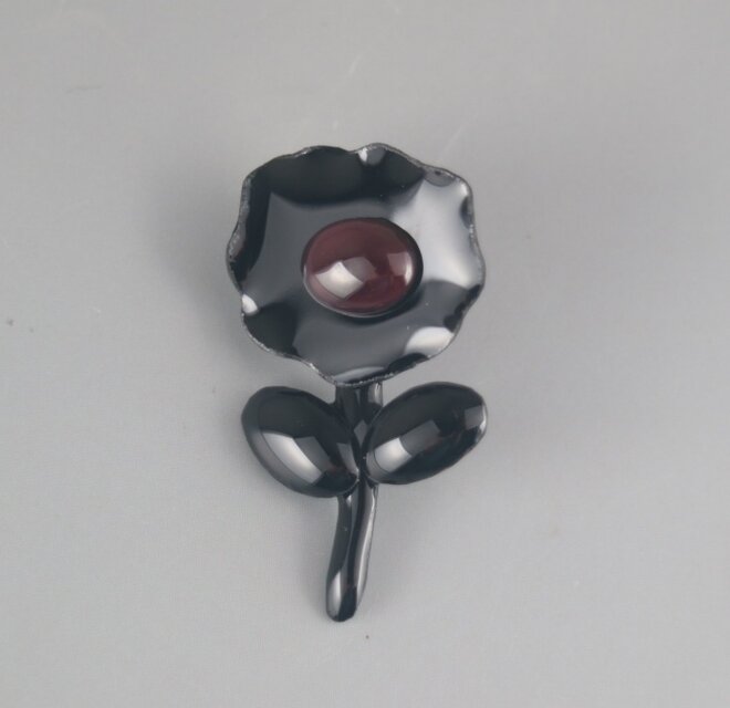 今日ブローチ届き、素敵な色合いにうっとりしました。紫の色が派手すぎず地味すぎずとっても素敵です。プレゼントにしますので喜ばれることと思います。有難うございました。
