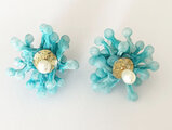 型染めを施した絹布を絞り染めの方法でつぶつぶと加工したピアスです。