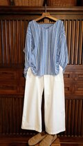 ストレッチチノ 白の ひかえめワイドパンツ