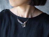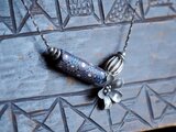 渋みの効いた鮮やかなアンティークビーズにお花のシルバーを合わせた編み紐ネックレス