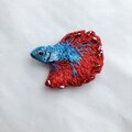 ベタの刺繍オーナメント/ブローチ "red and blue betta fish"