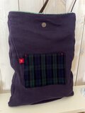 内布は紫色の市販のリネン布を使用。赤いタグがかわいい内ポケット付き。
