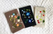 しっかりめのコットンリネン布地に花をデザイン・刺繍した通帳ケースです。