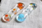 金太郎飴のようなお花のガラスを溶かし込んでいます。