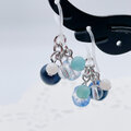 深いブルーのソーダライトを中心に、海色の石を合わせ、深海をイメージしたピアス(イヤリング/チャーム)です。