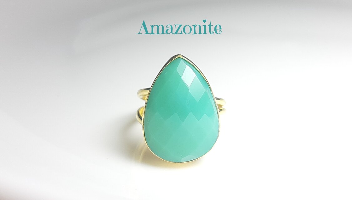 存在感のある大きなアマゾナイトリング。お色がとてもキレイで存在感があります。