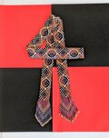 エンジや黒を中心に、丸やひし形のモチーフの周りには、ゴールド