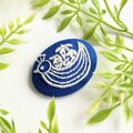黒に近い濃紺(ネイビー)のコットン地に北欧風の大人可愛いデザインでことりと小さなお花を手刺繍しました。