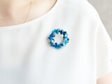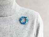 【ブローチ】波打ち際の泡 海の青 ブルーソーダ リース
