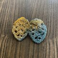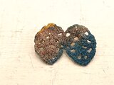 手編みのコットンレースに漆を塗った、青緑色漆のブローチ。