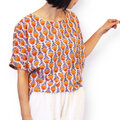 ★サラッとした薄手のブロックプリントコットンで仕立てたプルオーバーブラウス。