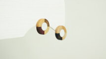 法勝寺焼松花窯さんとコラボした寄木細工のピアス・イヤリングです。