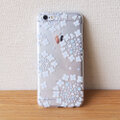 小さな白い花が清楚で可愛らしい紫陽花柄のクリアスマホケースです。