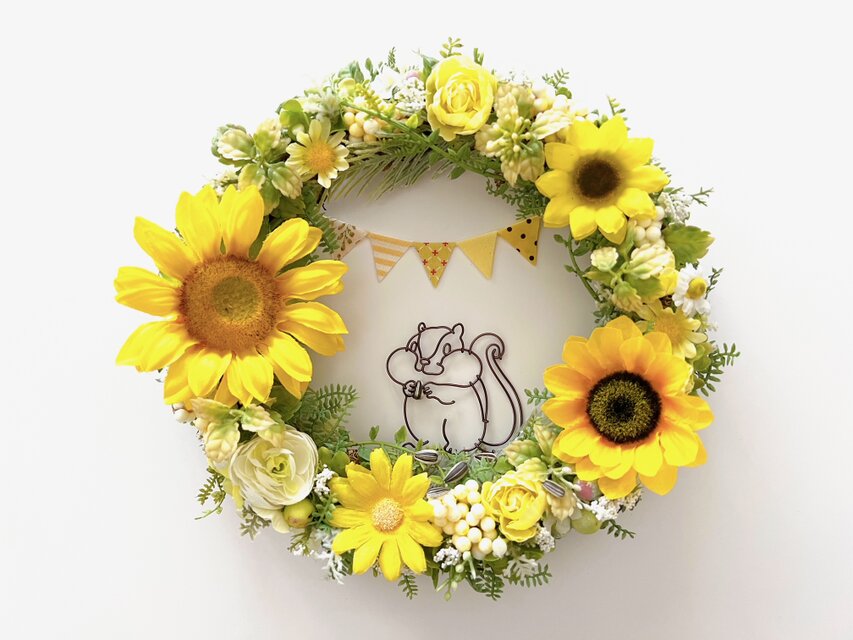 夏の暑さも和らぐような食いしん坊なシマリスの楽しいリースです