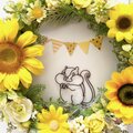 元気に咲いたひまわりの間から かわいい音が聞こえてきます ♪
