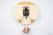 ムーブメントには、セイコークロック株式会社製のものを使用しているので、安心してお使いいただけます。ムーブメントは、クオーツ時計のステップで、振り子と電池をセットして、後ろの針回しで時刻合わせをするだけで時を刻み始めます(尚、振り子は疑似振り子です)。壁へのあたり部分は、壁を保護するようにフェルト仕上げになっています。