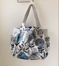 持ち手以外の部分にはすべて芯地を使用してしっかりと仕上げています。持ち手も生地を4枚重ねにして、丈夫に仕上げています。持ち手は長めにしていますので、肩掛けも可能です。