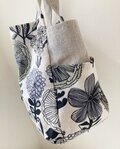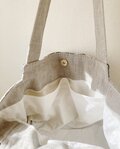 柄部分はコットンリネンキャンバスです。無地部分はリネン生地です。内側の生地はコットンです。