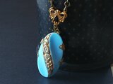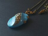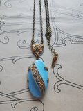 ヴィンテージ レア 水色Wave-Flower(36×20㎜)ロングOvalネックレス
