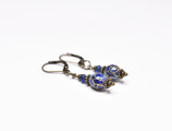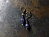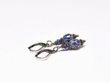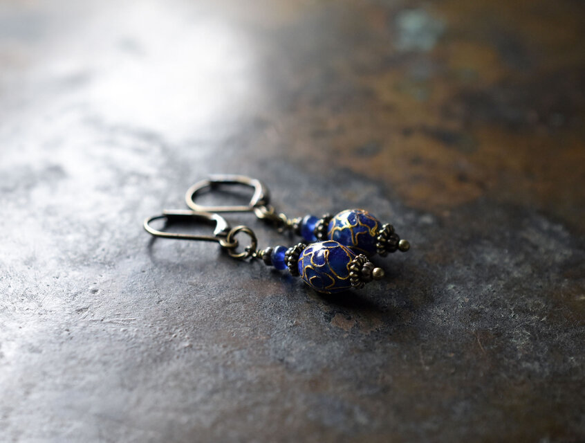 瑠璃色中国七宝焼きとブルーアンティークビーズのピアス