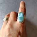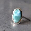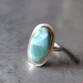 グリーンブルーのラリマーをシルバーリングに仕立てました。