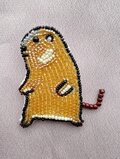丸小、特小、極小ビーズ等を使用しました。しっぽは丸大ビーズです。プレリードッグと作品名にしましたが、本当はタラバガンというモンゴルに住んでいるプレリードッグの仲間です。立ち上がっている姿がひょうきんです。目の大きさを変えてみました。