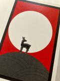昨日いただいておりましたのに、到着とお礼のメッセージをお送りするのがおそくなってしまい申しあけありませんでした。 明快なコントラストの色使い構図に、神の使いのような動物がしのんでいて、ドラマティックな作品だと思いました。ありがとうございます。