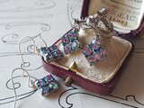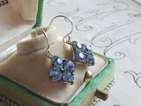 1950年代頃ヴィンテージ、約10㎜ほどのスクエア型のアイリスGlassでお作りしましたピアスまたはイヤリングです。