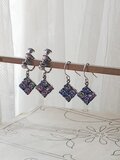 ヴィンテージ アイリスGlass(10㎜スクエア)Silver925製ピアス 又はイヤリング
